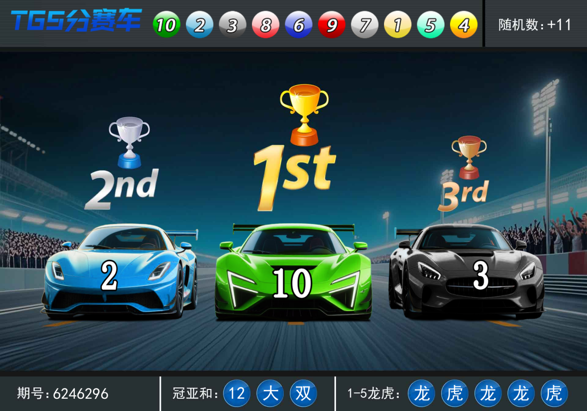 | 冠亚龙虎 | 冠亚和 | 第一名龙虎 | 第二名龙虎 | 第三名龙虎 | 第四名龙虎 | 第五名龙虎 | ||||||||